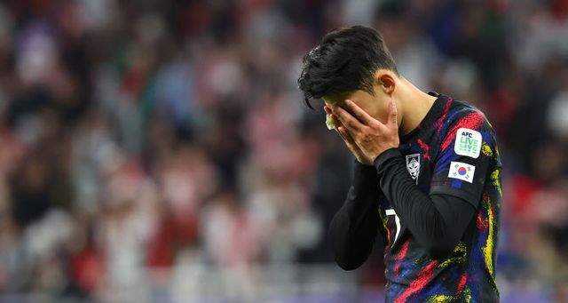 아시안컵 4강전 한국과 요르단 경기가 끝난 뒤 손흥민이 얼굴을 감싸쥔 채 경기장을 나서고 있다. 사진=연합뉴스