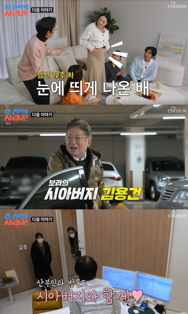 임신 22주 차에 접어든 황보라는 "착상이 한 번에 됐다. 난임병원을 일찍 졸업했다"라며 눈에 띄는 D라인을 자랑했다. 시아버지 김용건은 꽃다발을 들고 나타나 황보라의 임신을 축하하는 등 다정한 면모를 드러냈다.
