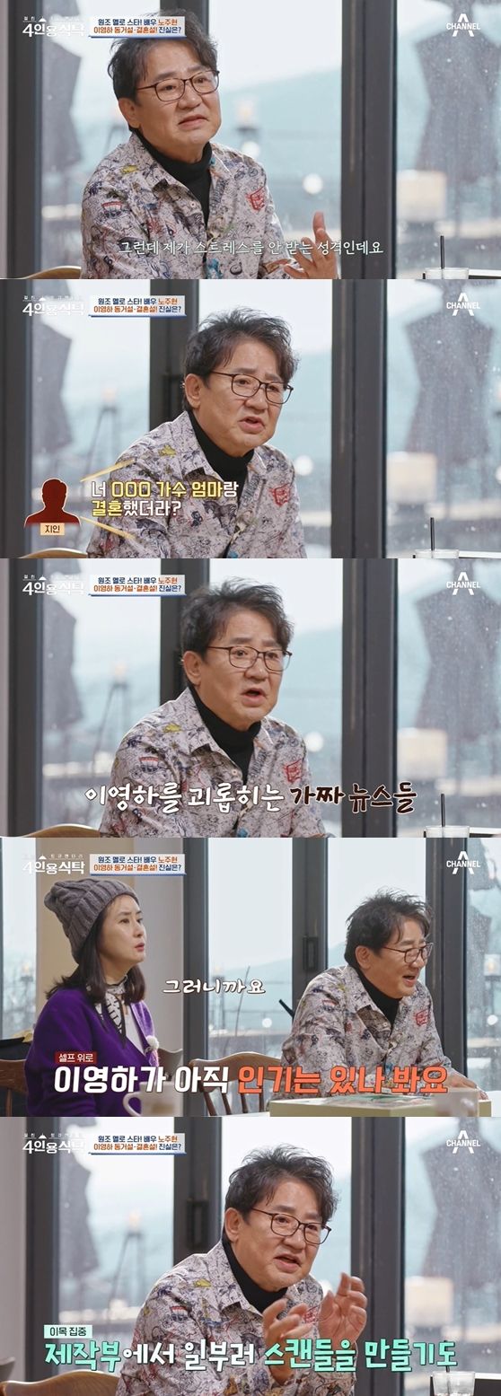 지난 12일 방송된 채널A '절친 토큐멘터리 4인용식탁'(이하 '4인용식탁')에서는 배우 노주현이 절친 이영하, 최정윤, 노형욱을 초대해 이야기를 나눴다.