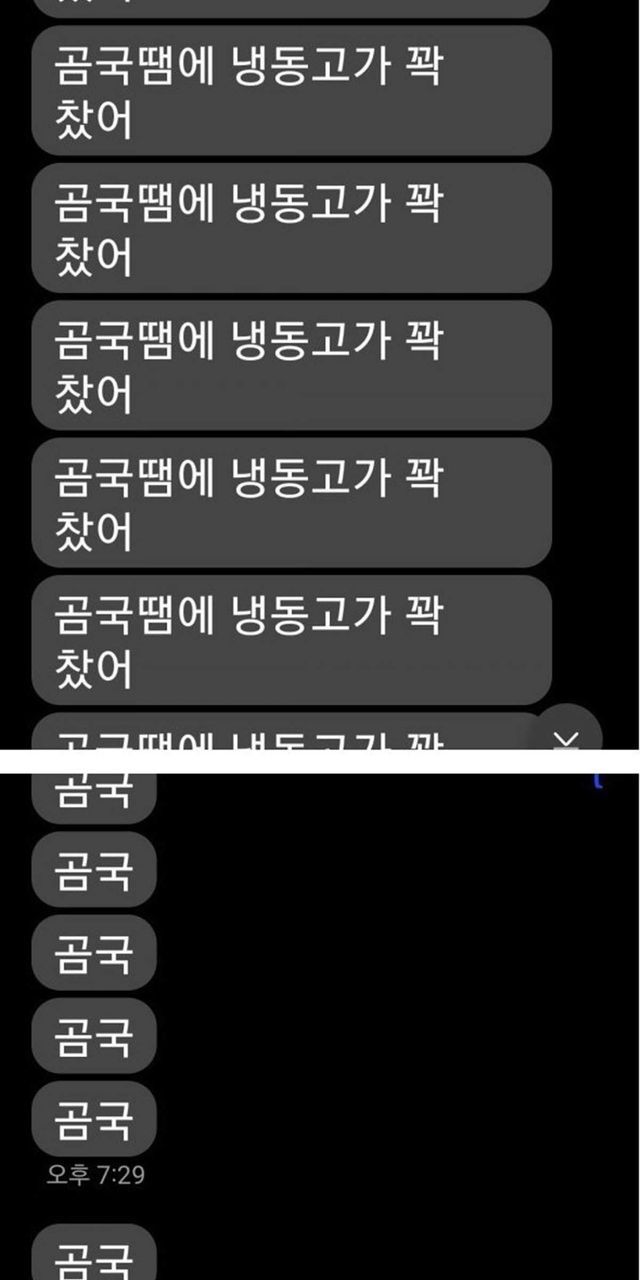 그러면서 글쓴이는 냉동실을 꽉 채운 곰국 때문에 스트레스를 받은 아내가 자신에게 보낸 문자메시지를 공개했다.