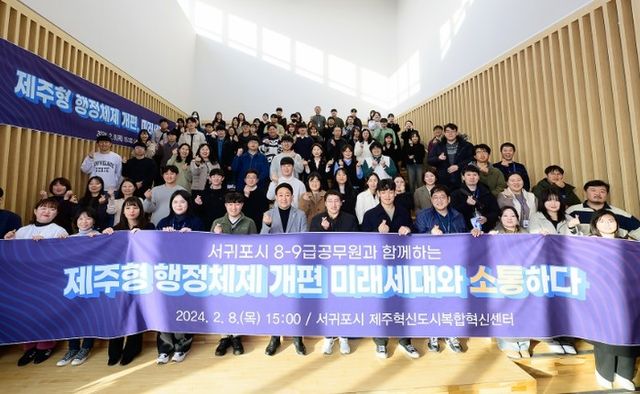 [파이낸셜경제=김영란 기자] 서귀포시는 8일 오후 서귀포시 제주혁신도시복합혁신센터 내 북카페에서 MZ세대 공무원 및 서귀포시 청년정책협의체 위원 등 100여명이 참석한 가운데 제주형 행정체제 개편 관련 소통의 시간을 가졌다.