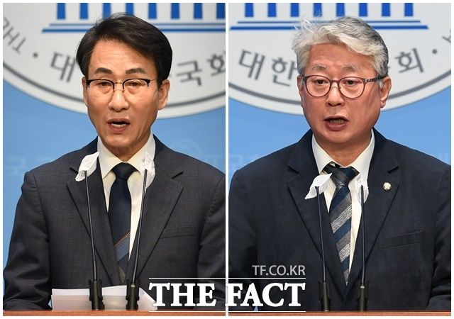 개혁신당 일원으로 화성에 출마 선언하는 이원욱 의원(왼쪽)과 남양주에 출마 선언하는 조응천 의원.