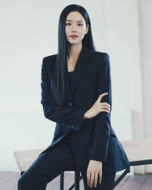 배우 안지혜가 올 블랙 수트 셋업 패션을 선보였다.