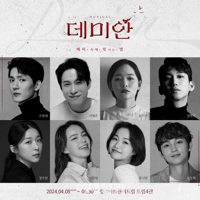 ‘데미안’은 헤르만 헤세의 동명 소설을 원작으로 하는 뮤지컬이다. 전쟁터의 폐허에서 죽어가는 젊은 군인 싱클레어가 어둠 속에서 나타난 데미안을 만나 자신의 과거를 여행하며 수많은 얼굴을 만나는 이야기를 그리고 있다.