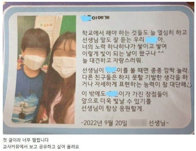 돌아가신 서이초 선생님이 작년에 제자에게 쓴 편지
