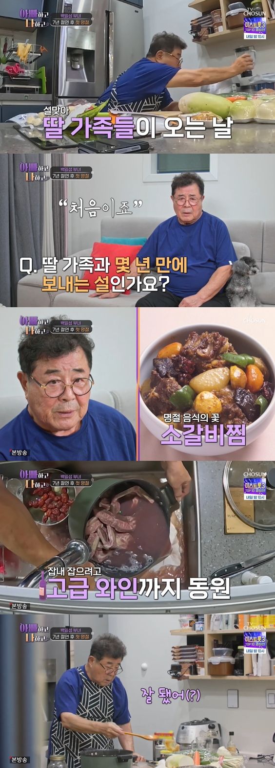 14일 방송된 TV조선 '아빠하고 나하고'(이하 '아빠하고')에서는 백일섭이 딸 가족을 위해 갈비찜을 준비했다.