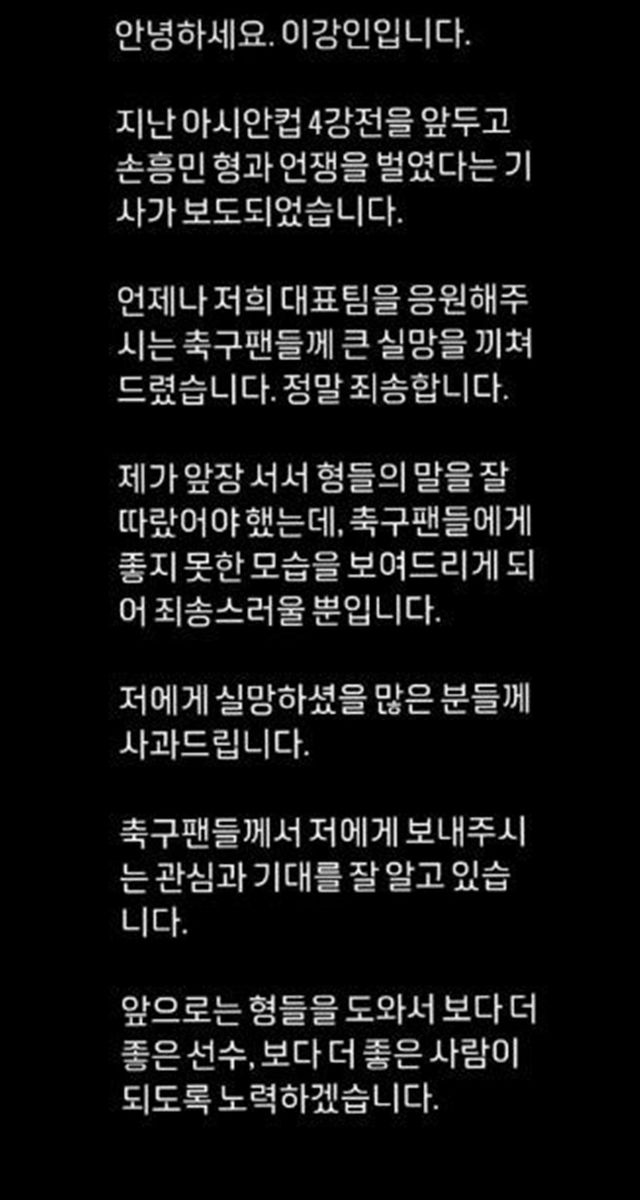 이강인의 사과문. / 이강인 인스타그램