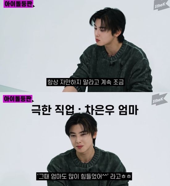 '어린 시절 칭찬을 바랐지만 어머니께서 엄하게 키워 내심 서운했다고 한다. 남달리 잘생겨서 버릇 없어질까봐 칭찬을 많이 참았다'는 글에 차은우는 "항상 자만하지 말라고 계속 조금 눌러주셨던 것 같다"며 "요즘 엄마와 같이 맥주 한 잔하면 '엄마도 많이 힘들었어'라고 하더라"라고 말했다.