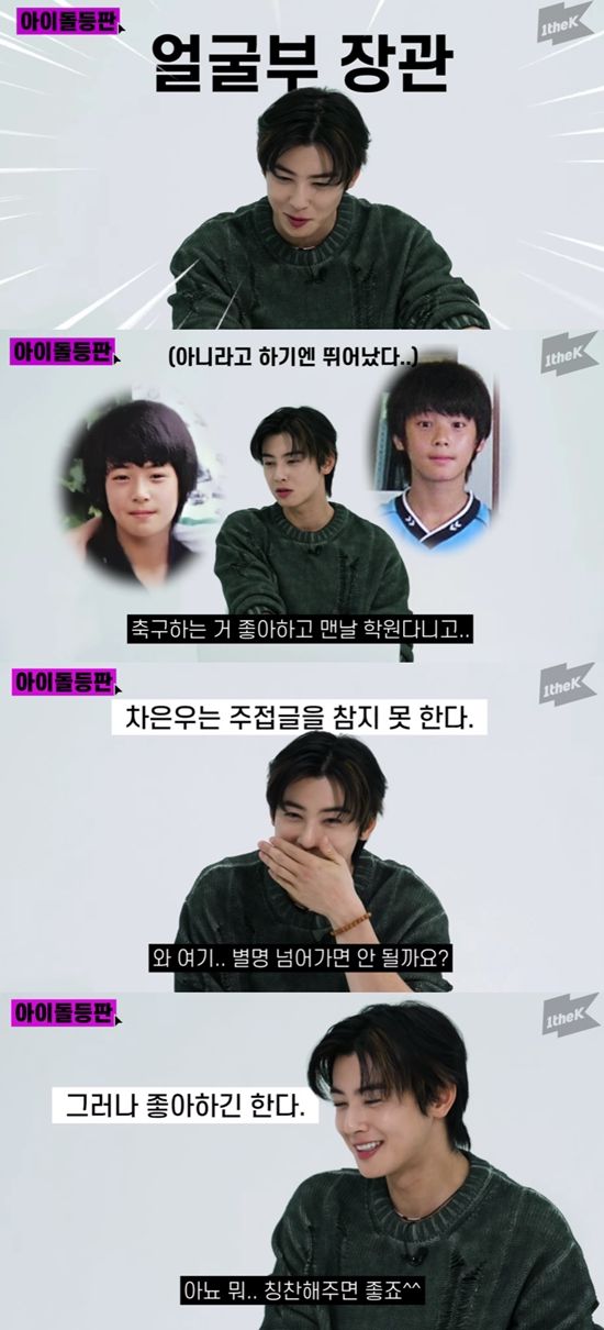 이어 '얼굴 천재'라는 별명에 대해서도 "넘어가면 안 될까요"라며 얼굴을 붉혔다. "부담스럽냐"라는 제작진의 질문에 차은우는 "아니다. 칭찬해주면 좋다"며 웃었다.