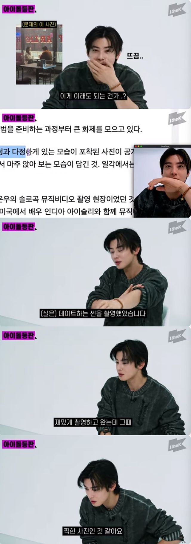 일각에서는 열애 현장이 포착된 것이 아니냐는 추측도 일었지만 당시 소속사 판타지오는 "차은우가 최근 미국에서 배우 인디아 아이슬리와 함께 뮤직비디오 촬영을 진행했다"라고 밝힌 바 있다.
