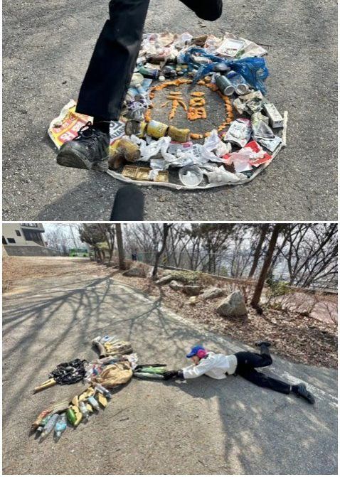 최강희와 멤버들은 백련산 구석구석을 누비며 다양한 쓰레기들을 모았다.