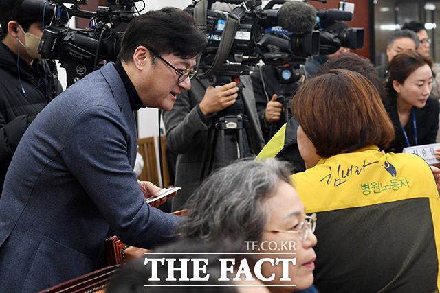 이날 홍 원내대표는 "의료 개혁의 모든 논의가 의대 정원 확대와 의사 수 증원으로만 모아지는 것 같은데 의사 정원 확대는 의료 공공성을 높이는 수단이지 그 자체가 목적이 아니다"라며 "그러나 정부는 해당 문제 관련 논의에만 집중하다 보니 영리화·산업화 되어 붕괴되고 있는 공공의료 문제를 제대로 논의하지 않는 것 같다"고 꼬집었다.