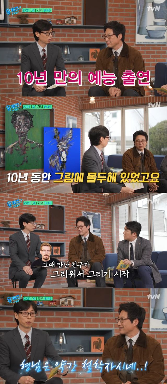 유재석은 박신양을 "배우에서 화가로 돌아왔다"고 소개했다. 이어서 유재석이 "예능에서 뵌 지 10년이 넘었다"고 오랜만의 출연에 반가워하자 박신양은 "그림에 정말 몰두해 있었다"고 말을 이었다.