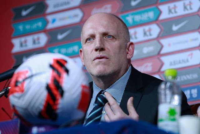 마이클 뮐러 국가대표전력강화위원장이 지난 28일 오후 서울 종로구 대한축구협회 축구회관에서 위르겐 클린스만 축구 국가대표팀 감독 선임과 관련해 기자회견을 하고 있다. / 뉴스1