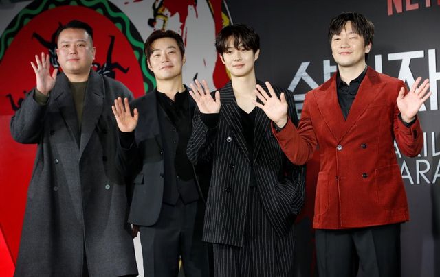 배우 이창희 감독(왼쪽부터)과 배우 이희준, 최우식, 손석구가 지난 1일 서울 용산구 몬드리안 서울 이태원 호텔에서 진행된 넷플릭스 오리지널 시리즈 '살인자ㅇ난감' 제작발표회에서 포즈를 취하고 있다. / 뉴스1
