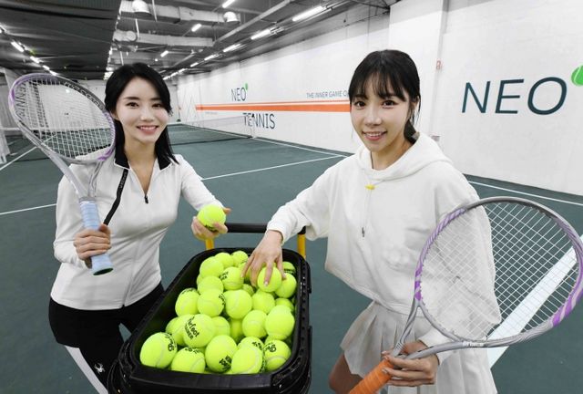 모델이 홈플러스 가양점의 실내테니스 연습장에서 테니스를 즐기고 있는 모습. 사진=홈플러스