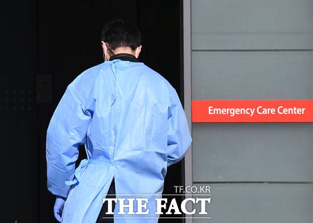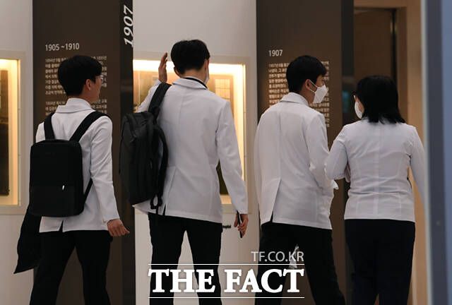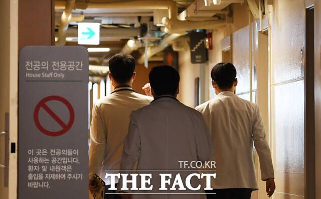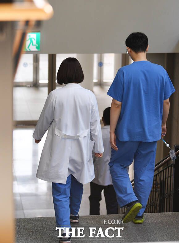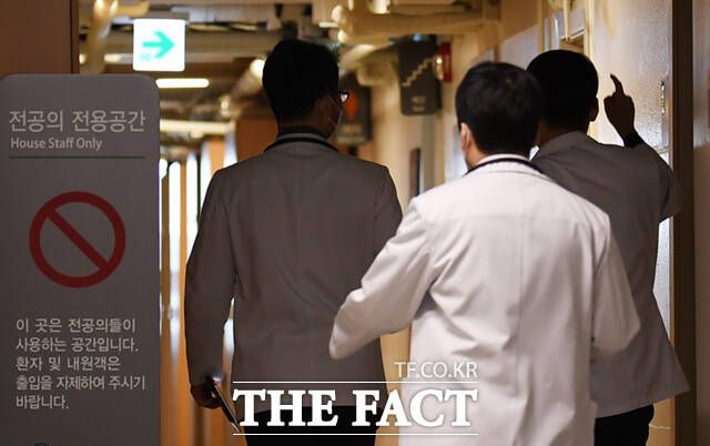 서울의 한 대학병원에서 의료진들이 전공의 전용공간으로 이동하고 있다.