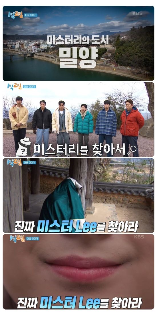 그는 지난주 방송된 예고편에서 한복을 입은 뒤태와 입 모양만 공개된 특별 게스트 '미스터리'(Mr. Lee)로 소개됐다. 이에 '1박 2일' 멤버들은 '미스터리를 찾아서' 미션을 통해 특별 게스트 찾기에 나선다.