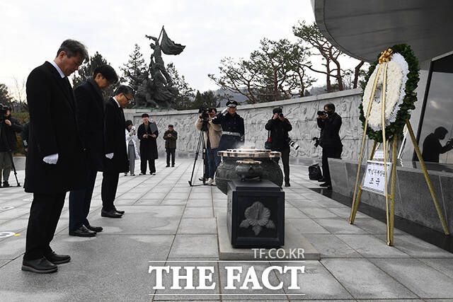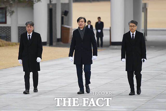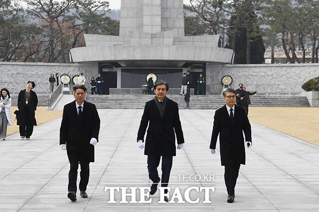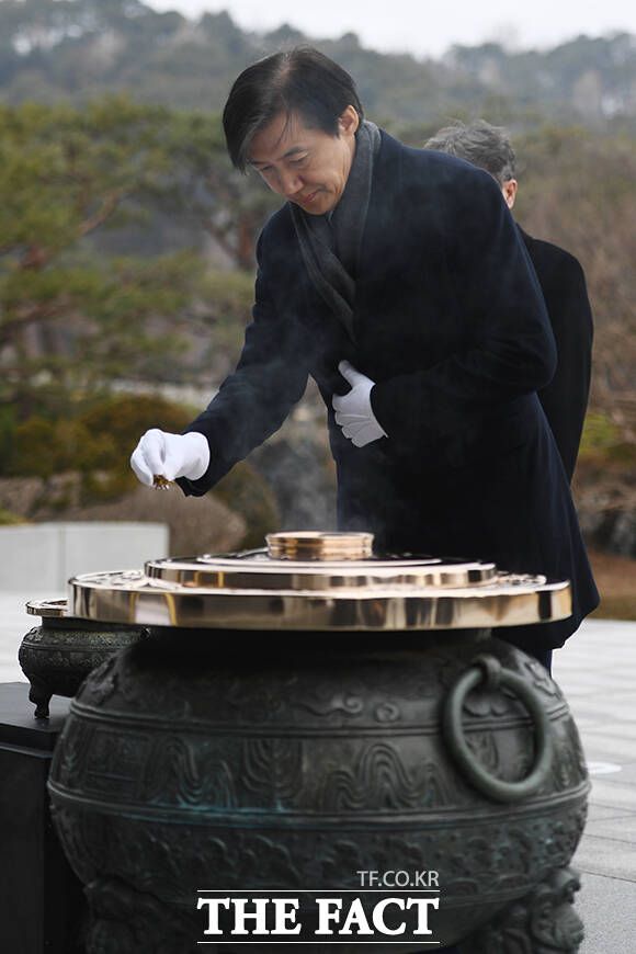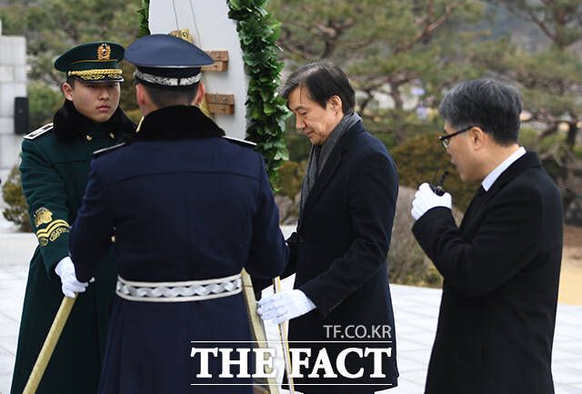 가칭 조국신당 인재영입위원장인 조국 전 법무부장관이 이날 현충원을 찾아 현충탑을 참배한 후 김대중 전 대통령과 김영삼 전 대통령 묘역을 찾아 참배했다.