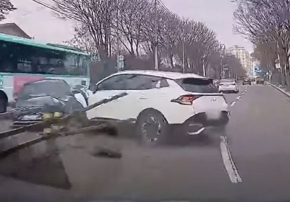 2차로에서 앞서가던 SUV 차량이 방향등도 켜지 않고 1차로로 차선을 변경하더니 그대로 중앙 분리대를 들이받은 것이다.
