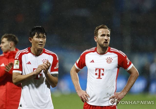 경기가 끝난 뒤 아쉬운 표정을 짓는 김민재(왼쪽)와 해리 케인 / (로이터=연합뉴스)