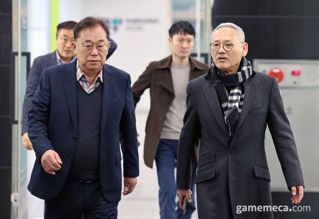 ▲ 지난 16일, 문화체육관광부 유인촌 장관 게임물관리위원회 방문 현장, 게임물관리위원회 김규철 위원장(좌)와 유인촌 장관(우)가 회의실로 입장하고 있다 (사진제공: 문화체육관광부)