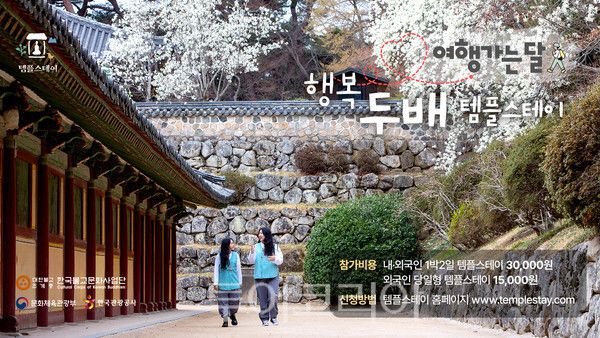 [투어코리아=조성란 기자] 한국불교문화사업단은 문화체육관광부 주최, 한국관광공사 주관의 ‘2024 여행가는 달’을 연계한 템플스테이 할인 이벤트 ‘행복 두 배 템플스테이’를 오는 26일부터 3월 31일까지 진행한다.