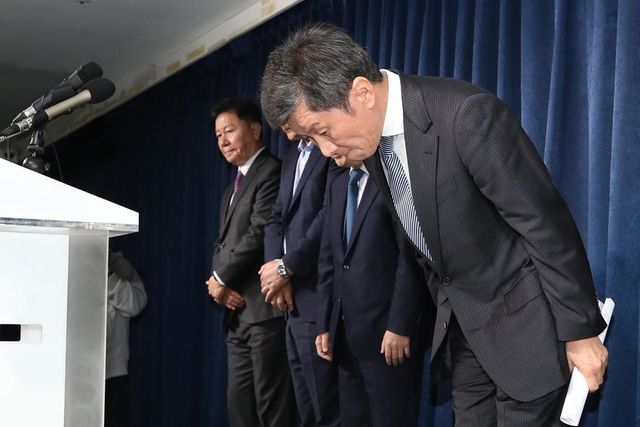 정몽규 대한축구협회장이 16일 서울 종로구 축구회관에서 위르겐 클린스만 축구대표팀 감독의 경질을 발표한 후 인사하고 있다. / 뉴스1