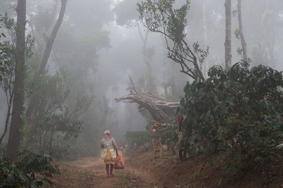 인도의 관점에서 바라보면, 커피 재배는 인도 무슬림 순례자 바바부단 (Baba Budan)과 함께 시작되었다. 바바부단은 예멘 순례를 마치고 메카에서 돌아 오는길, 인디아의 마이소르까지 커피콩 7개를 수염 속에 숨겨서 인도로 밀반입했다. 15세기 예멘 이슬람교 지배자 다바니가 페르시아풍의 커피를 마시기 시작한이후 일반기호품으로 급속히 보급되었다.