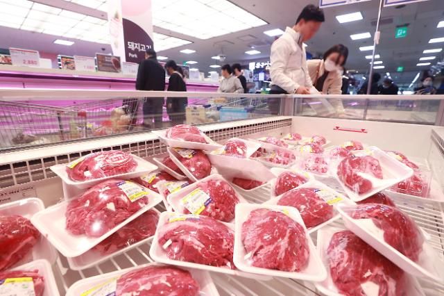首尔市一家大型超市内,顾客正在选购牛肉。【图片提供 韩联社】