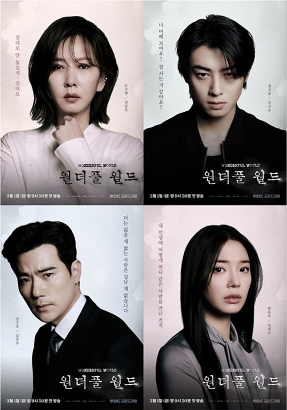 김남주 차은우 임세미 김강우(왼쪽 위부터 시계방향)의 '원더풀 월드' 개인 포스터가 공개됐다. /MBC