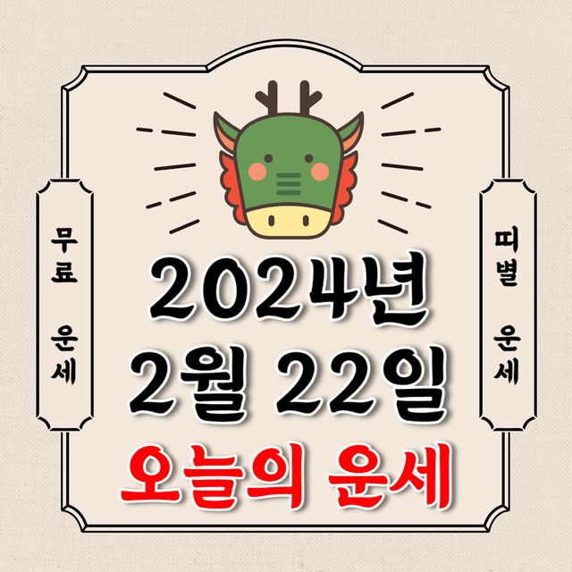 오늘의 운세 2024년 2월 22일 목요일 (음력 1월 13일 / 띠별 운세 / 생년월일 운세)에 대해 알아 보겠습니다.