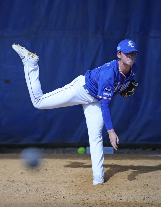 2023시즌 1라운더 신인 이호성은 삼성이 일찌감치 대형 유망주로 점찍었던 선수다. 지난해 개막과 함께 엔트리에 포함돼 3경기 7이닝 2실점으로 불펜에서 좋은 모습을 보인 이호성은 이후 2군에서 선발 수업을 받은 뒤 10월 1군에 콜업, 2경기 선발로 나와 10이닝 3자책으로 호투하며 가능성을 보였다. 지난 시즌 초반 당시 해설위원이었던 정민태 현 삼성 투수코치는 본지와 인터뷰에서 “이호성은 구속도 빠르지만 커맨드(원하는 곳에 공을 던질 수 있는 능력)도 좋고 정면승부를 할 수 있는 좋은 투수다”라며 그의 성장을 크게 기대한 바 있다.