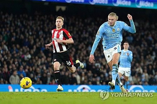 맨시티가 21일(한국시간) 잉글랜드 맨체스터에 있는 에티하드 스타디움에서 열린 브렌트퍼드와의 2023-2024시즌 프리미어리그 18라운드 순연 경기에서 홀란의 결승 골로 1-0으로 승리했다.