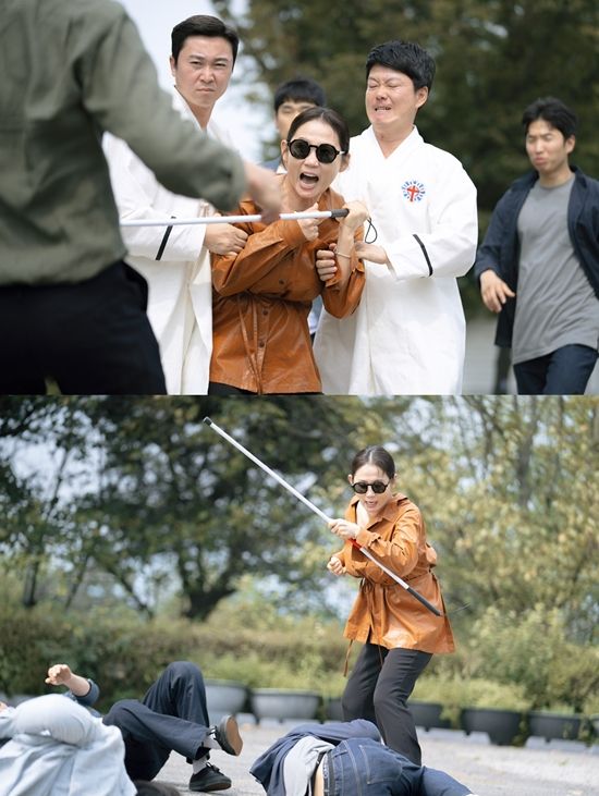 공개된 사진 속에는 주로 뒤에서 직원들에게 힘을 보태는 식으로 솔루션에 참여하던 손장미가 동기준과 나란히 업무에 투입된 상황이 펼쳐졌다. 선글라스에 지팡이 차림의 손장미와 그런 그녀를 수행하는 동기준의 조합이 신선함을 자극하는 것도 잠깐, 심상치 않은 남자들이 에워싼 두 사람에게 위험 신호가 느껴지고 있다.