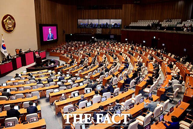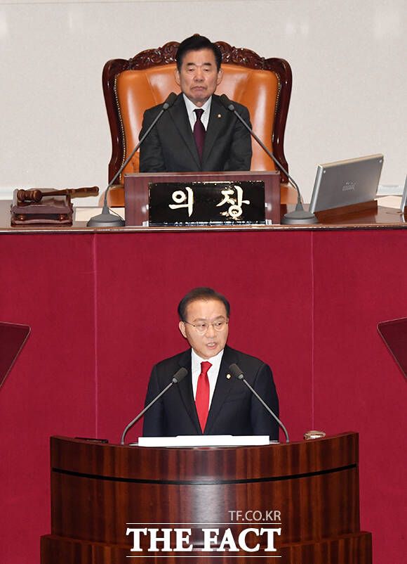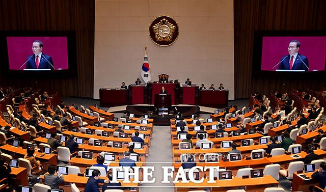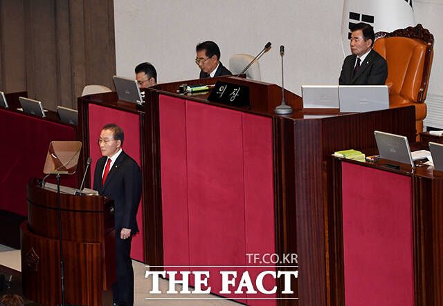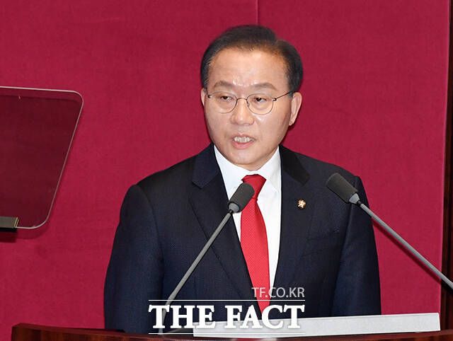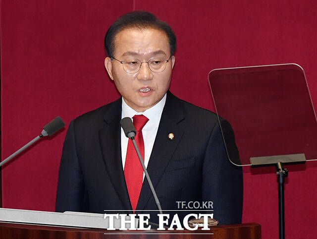 [더팩트ㅣ국회=배정한 기자] 윤재옥 국민의힘 원내대표가 21일 오전 서울 여의도 국회에서 열린 제413회국회(임시회) 3차 본회의에 참석해 교섭단체 대표연설을 하고 있다.