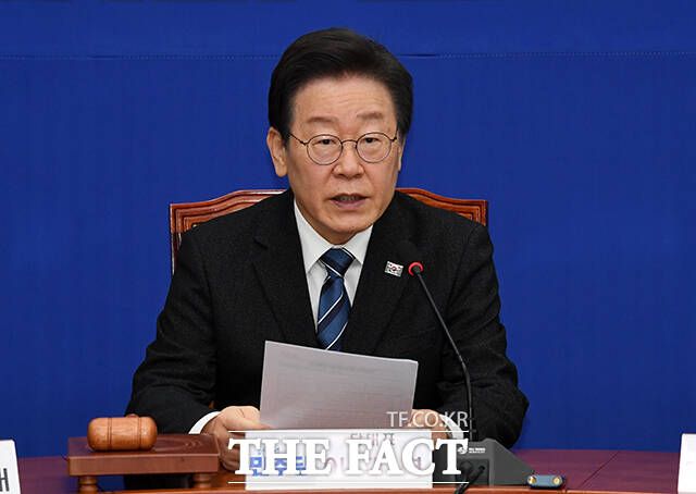 [더팩트ㅣ국회=배정한 기자] 이재명 더불어민주당 대표가 21일 오전 서울 여의도 국회에서 열린 최고위원회의에 참석해 모두발언을 하고 있다.