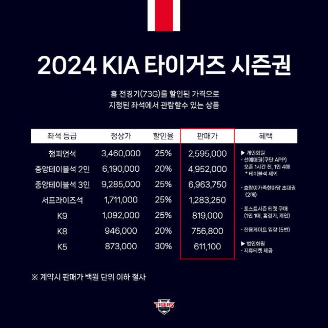[이데일리 스타in 이석무 기자] KIA타이거즈가 2024년 홈경기 시즌권을 판매한다.