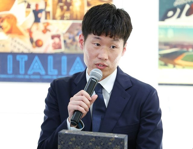 2022 카타르 월드컵 개막을 나흘 앞둔 2022년 11월 16일(현지 시각) 카타르 도하 FIFA 팬 페스티벌 행사장 내 설치된 FIFA 박물관 특별전시회 공식 오프닝 이벤트에서 전 국가대표 박지성이 2002 한일월드컵 당시의 유치계획서(비딩북)를 박물관에 기증하며 이야기하고 있다. / 연합뉴스