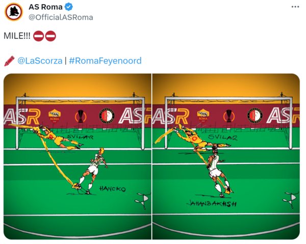 자칫 분위기를 내줄 수 있는 상황이었는데, 밀레 스빌라르 로마 골키퍼가 팀을 구해냈다. 페예노르트 2, 3번 키커 다비드 한츠코, 알리레자 자한바크시의 슈팅을 연달아 걷어냈다. 이후 로마는 3, 4, 5번 키커가 모두 골망을 흔들어 16강 진출권을 얻었다.