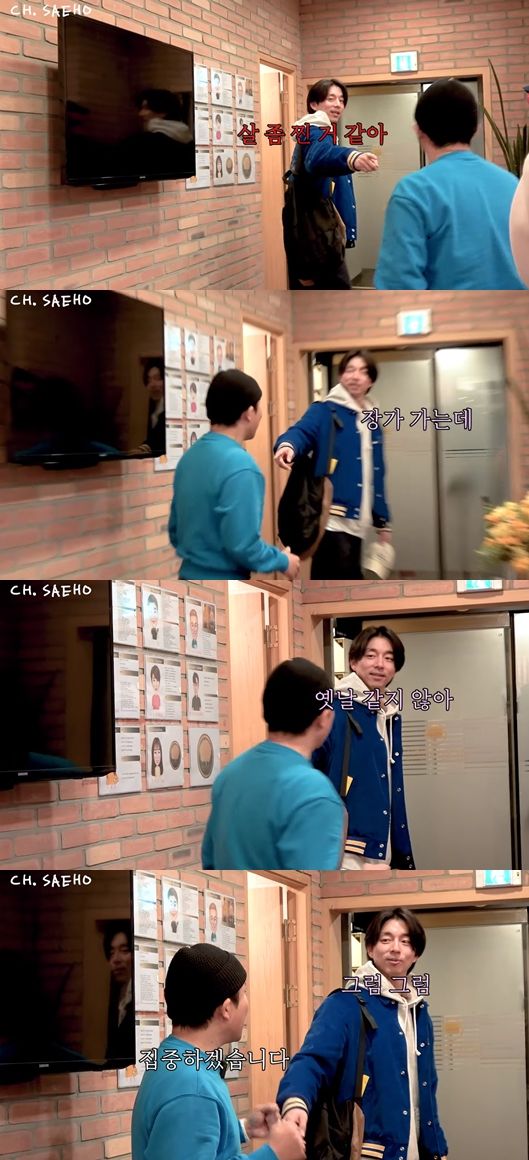 피트니스 센터 입구에서 촬영 중 "소리 때문에 못 지나가고 있었다"라며 공유가 등장했다. 카메라를 발견한 공유는 "지금 찍고 있냐"며 "조세호 채널 많이 사랑해달라"며 조세호와 다정히 포즈를 취했다.