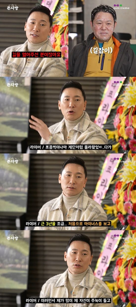 지난 22일 '그리구라' 유튜브 채널에는 '개업 축하해 주러 왔다가 차갑게 얼어버린 라이머'라는 제목의 '뜬다방' 1회 영상이 게재됐다. 이날 게스트로는 라이머가 출연했다.