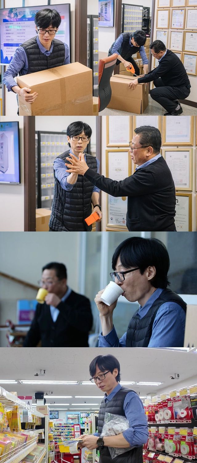 공개된 사진 속에는 전무님을 졸졸졸 쫓아다니며 업무를 배우는 유재석의 모습이 눈길을 끈다. 유재석은 박스 포장을 하고 송장을 붙이고, 전무님의 심부름 미션까지 받으며 일당백 막내로 활약한다고. 그가 과연 무사히 업무를 완수할 수 있을지 관심이 집중된다.