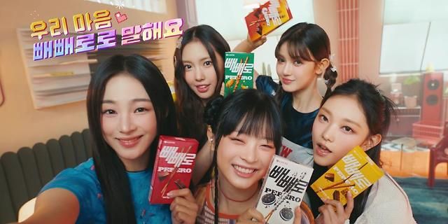 New Jeans为乐天巧克力棒Pepero代言。【图片提供 乐天食品】