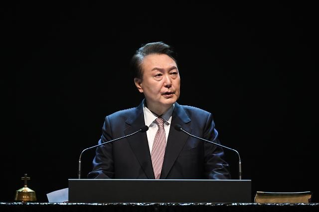本月25日,尹锡悦出席在京畿道水原市某教会举行的“纪念3·1运动105周年礼拜”。【图片提供 韩联社】