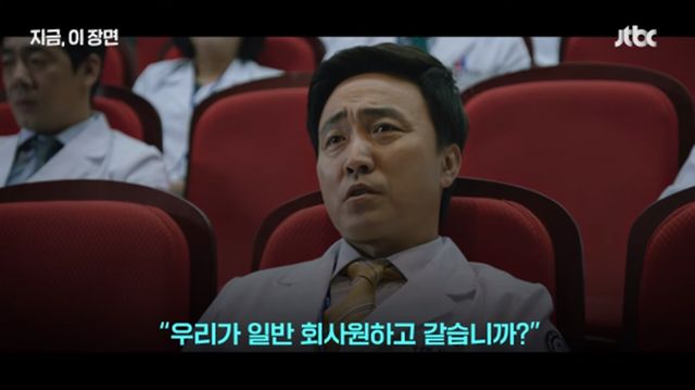 이에 의사는 “우리가 일반 회사원하고 같냐”고 반발한다. 의사들의 권위 의식을 빗댄 연출이다.