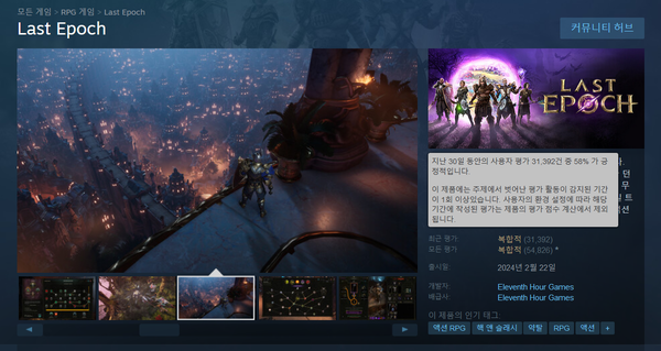 다만, 이용자 평가 측면에서는 불안정한 서버 상황과 함께 부정적인 평가를 면치 못하고 있다. 정식 출시 이후 평가가 다수 반영된 ‘라스트 에포크’의 최근 30일 이내 스팀 이용자 평가의 경우, 약 31,000개 평가 가운데 58%만이 게임을 긍정적으로 평가한 ‘복합적’을 기록하고 있다. 부정적인 평가의 대부분은 늘어지는 접속 대기열, 불안정한 서버 상황 등을 지적하고 있어, 게임의 지속적인 흥행을 위해서는 관련 대응이 최우선 과제가 될 전망이다.