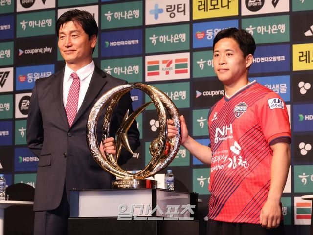 그런 행사장의 분위기를 바꾼 순간은 가장 마지막으로 정정용 김천 감독이 마이크를 잡은 순간이었다. 올 시즌 승격한 김천이 가장 마지막으로 마이크를 넘겨받자, 정 감독은 곧바로 ‘충성’을 외치며 경례했다. 그는 “김현욱 선수가 분위기 탓에 못 하겠다고 하기에, 내가 했다”라고 웃으며 “올 시즌 우리 팀만 승격했다. 꼭 살아남아서, 팬들과 즐거운 시간을 공유하고 싶다”라고 덧붙였다.