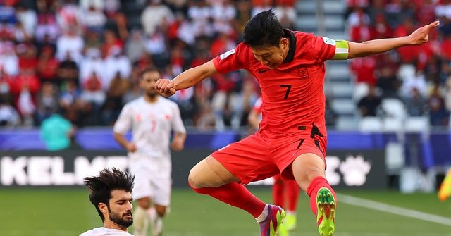 지난달 15일(현지 시각) 카타르 도하 자심 빈 하마드 스타디움에서 열린 2023 아시아축구연맹(AFC) 아시안컵 조별리그 E조 한국과 바레인의 경기에서 대표팀 손흥민이 바레인 모하메드 알 하르단의 태클을 점프로 피하고 있다. / 연합뉴스