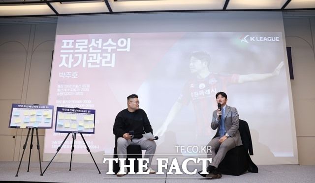 K리거 은퇴 후 해설위원으로 활동 중인 박주호 위원(오른쪽)이 참석자들에게 다양한 조언을 하고 있다./K리그